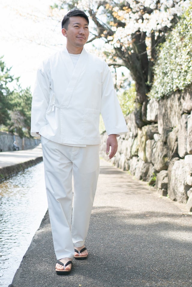 今回のプロジェクトは作務衣になじみのない方に知っていただきたく立ち上げたのですが、もちろん作務衣を普段着ている方にも、進化した作務衣を試していただきたいと思っています。作務衣に馴染みがある世代の方も似合います。