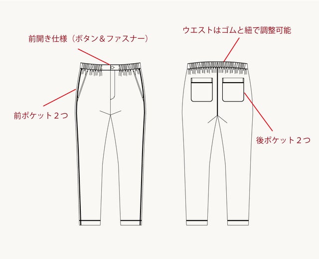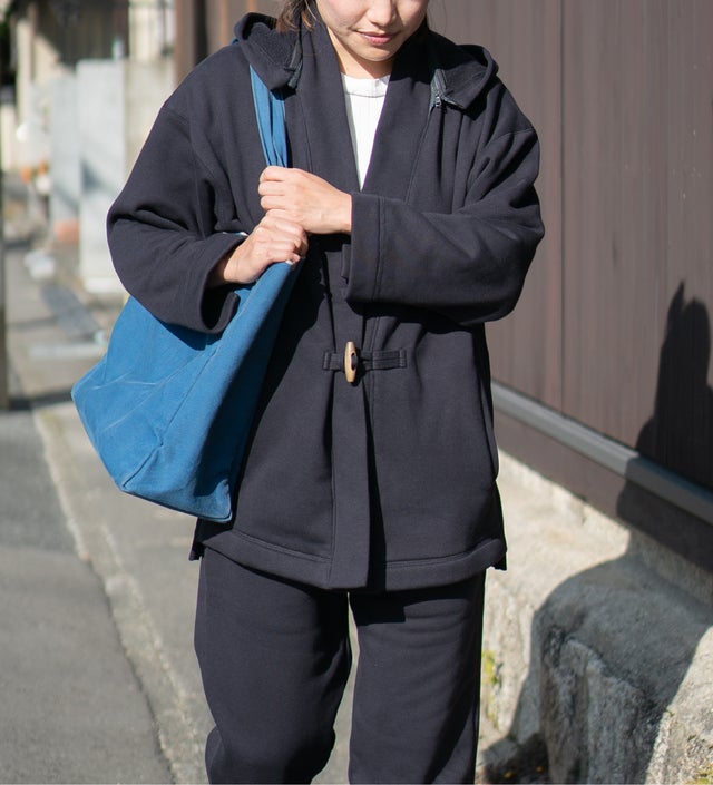 とても動きやすく、脱ぎ着もしやすい、部屋着でも外出着としてもつかえる便利な服です。作務衣のつくりをイチから紐解き、リデザインすることにしました。