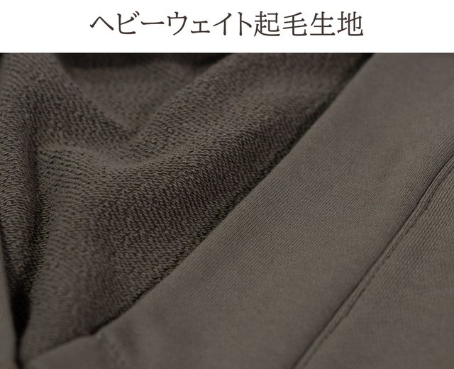 暖かい厚手の国産スウェット裏毛生地「30/7 度詰裏毛」を採用しました。柔らかく部屋着としても向いています。