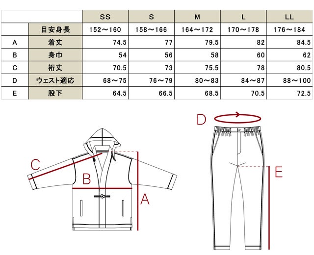 サイズは男女兼用サイズでSS~LLまで5サイズ展開です。