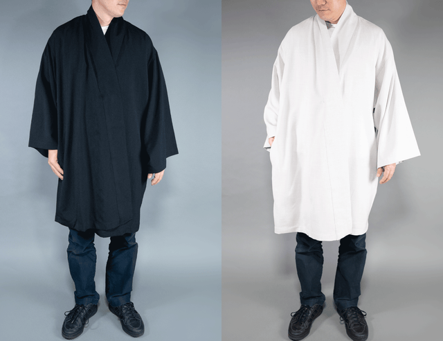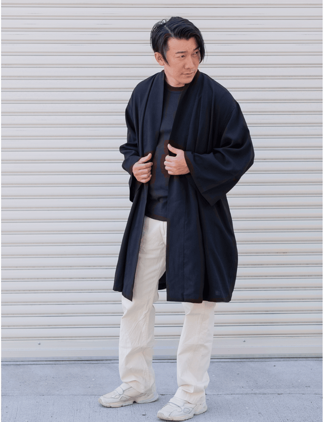 羽織ジャケット(コート)は「作務衣の上に格好良く着られるものはないかと」開発しておりましたが「洋服に着ても格好いいよね」となり今回のプロジェクトにいたりました。