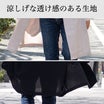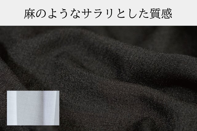 夏の羽織りに採用した生地は麻のような質感のポリエステル素材。見た目や肌触りはは天然素材のようでいて、洗濯機でも洗えシワになりにくい扱いやすい素材です。