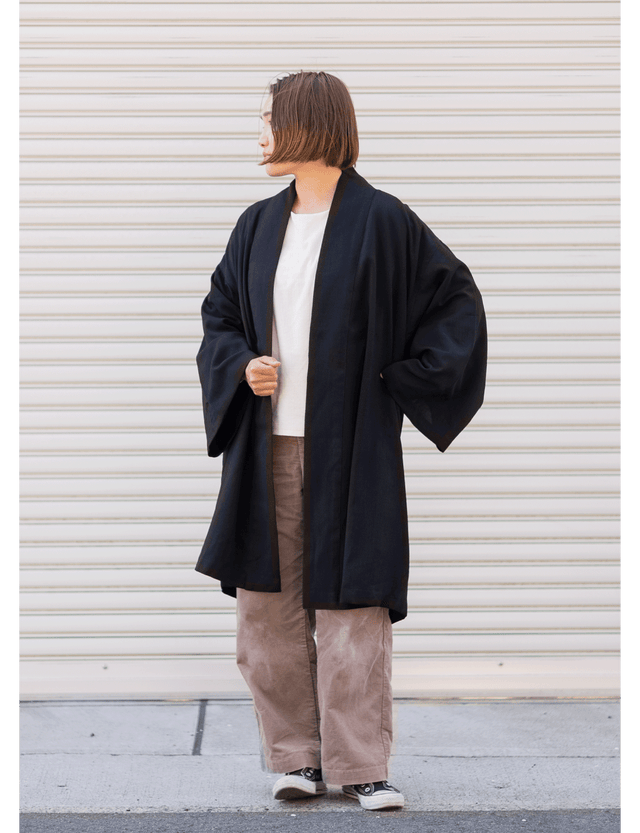 - 着物の羽織とジャケット・コートを融合したデザイン。和の雰囲気と着やすさ扱いやすさの両立