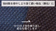 ▽藍染の工程。手染め~中干しを繰り返し濃い藍色に仕上げる