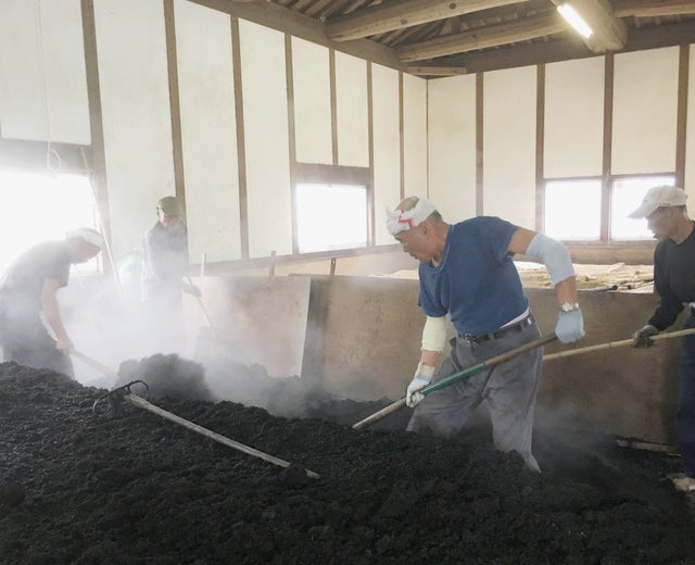▽お二人の蒅を造る切り返し作業
