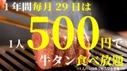 - 1人500円で牛タン食べ放題の毎月29の日イベントに1年間参加可能な豪華会員特典もお見逃しなく