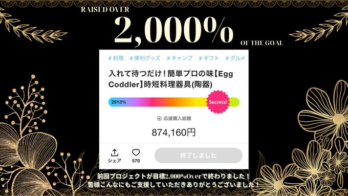 このプロジェクトはAll in型です。目標金額の達成に関わらず、プロジェクト終了日の2025年11月29日までに支払いを完了した時点で購入が成立します。