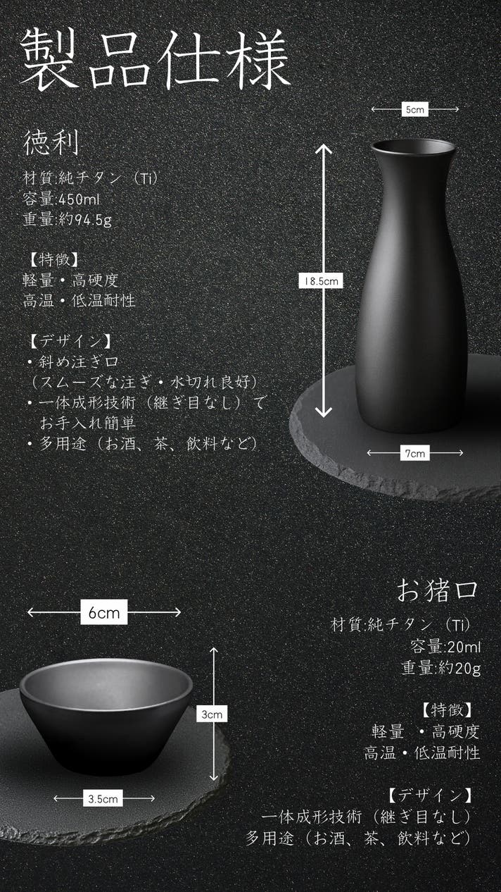 【Makuake限定価格】チタン製徳利1点とチタン製お猪口3点