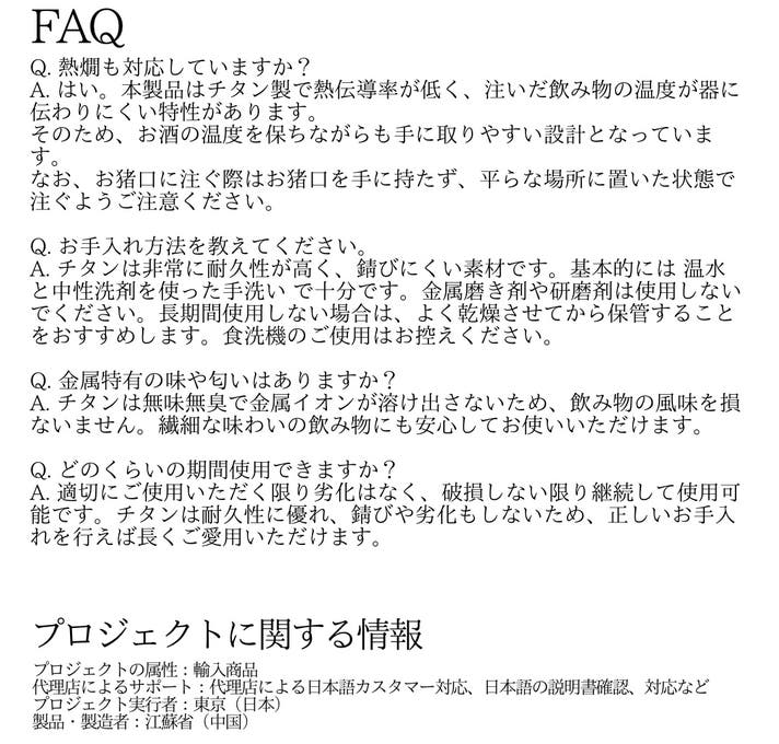 「Makuake(マクアケ)」は、実行者の想いを応援購入によって実現するアタラシイものやサービスのプラットフォームです。このページは、 プロダクトカテゴリの 「【機能×造形美】繋ぎ目のない流麗美。冷酒・熱燗対応の純チタン製酒【徳利・お猪口】」プロジェクト詳細ページです。