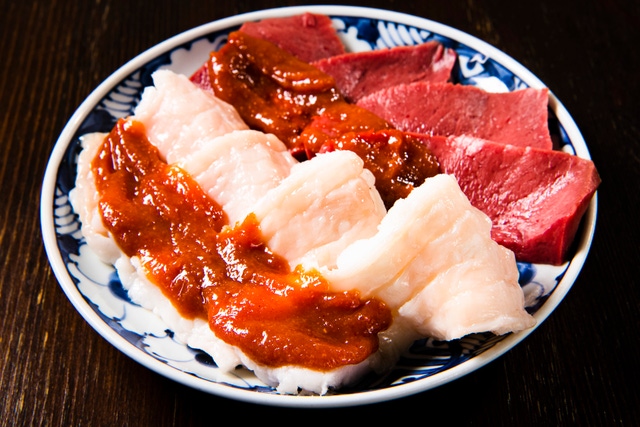 それぞれに違う食感、脂質、コク、歯ごたえを食べ比べることができ、「いちわ」で1、2位を争うほどの人気メニューです。