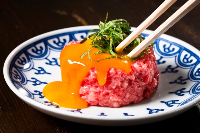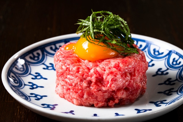 今回ご用意する「Makuake限定 鹿児島黒牛コース」のなかで、是非とも楽しんでいただきたいのが「鹿児島産黒牛のひれのタルタルユッケ」。