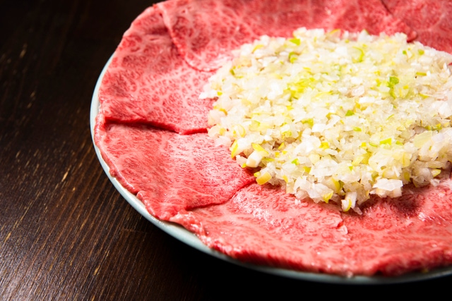 口に含むと粉雪のようにさっと溶けながらも、あとにはうまみをしっかり残し、肉の甘みがジュワッと口いっぱいに広がります。