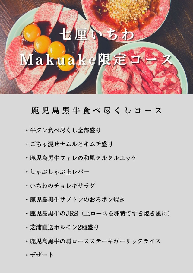 今回は西永福店の誕生に伴い、いちわ全店(千歳船橋店、経堂店、豪徳寺店)で楽しめるMakuake限定の「鹿児島黒牛食べ尽くしコース」をご用意。