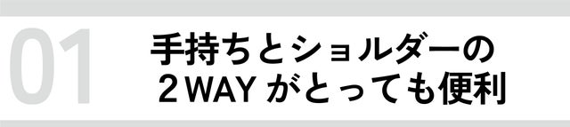 2WAYバッグなので、通常は手に持って使い、荷物が多くなれば肩からかけてショルダーとして使うなど、状況に応じて使い分けできます。