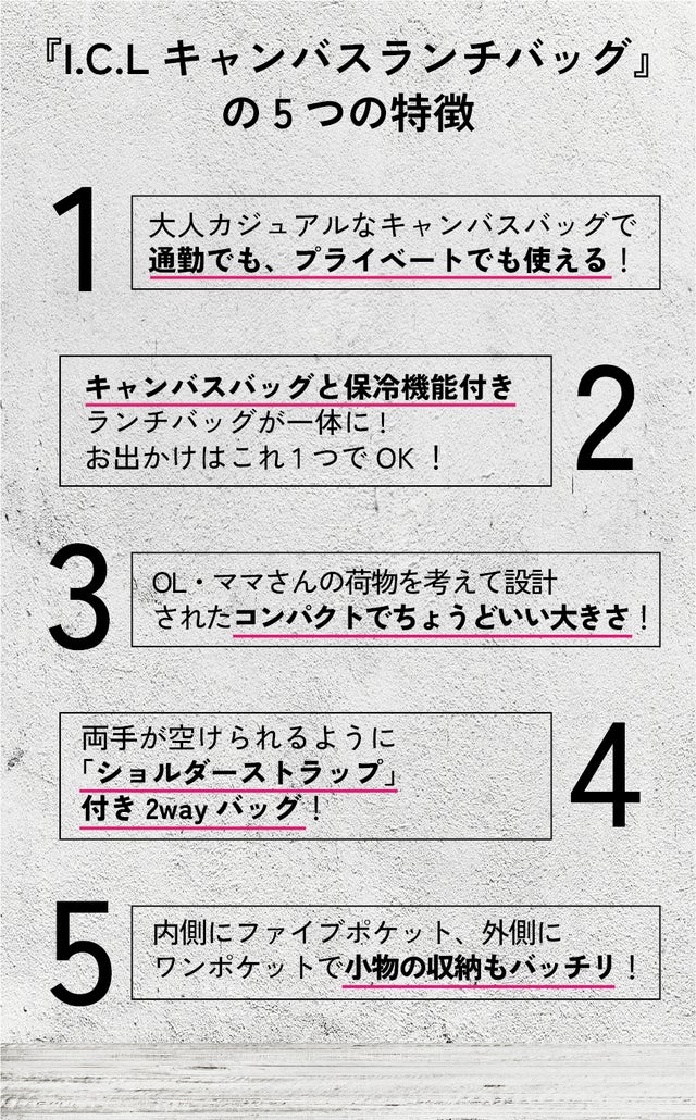 この度は、弊社が開発した『I.C.Lキャンバスランチバッグ』ページをご覧いただき、誠にありがとうございます。