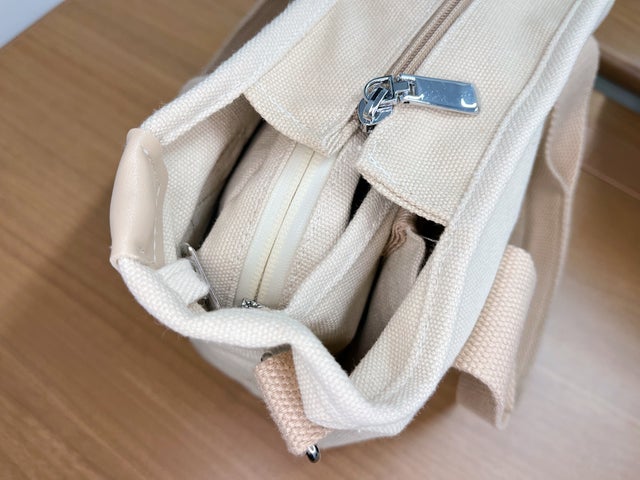 また、バッグ上部にファスナーが付いているので、中の物が丸見えにならないのも嬉しいところ。
