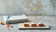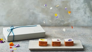- エディブルフラワーをアクセントにした贅沢なキューブケーキ ギュッと濃縮、フルーティーな焼き菓子