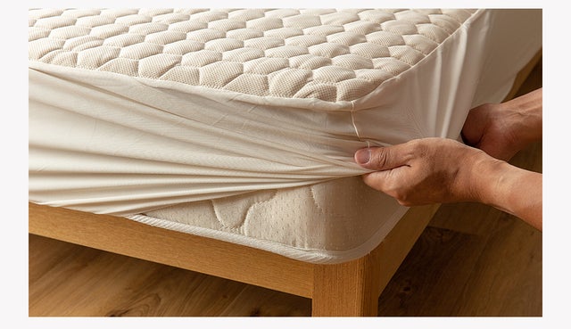 マットレスの四隅にゴムを引っかける様に簡単設置。