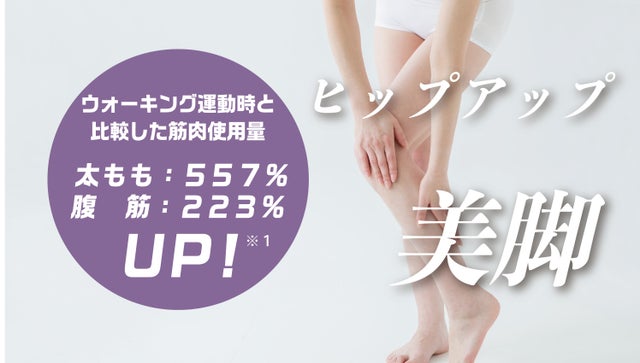 また、当商品でジャンプ運動した際の筋肉使用量と、一般的なウォーキング運動を比較すると、腹筋は約2倍、太ももに関してはなんと約5倍もUPするという結果も出ています!※1(効果には個人差があります。)