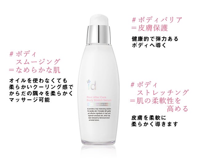 滑らかでないからだの皮膚を柔軟にし、柔らかくするボディストレッチセラムです。