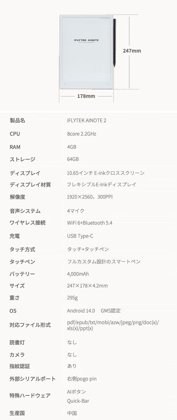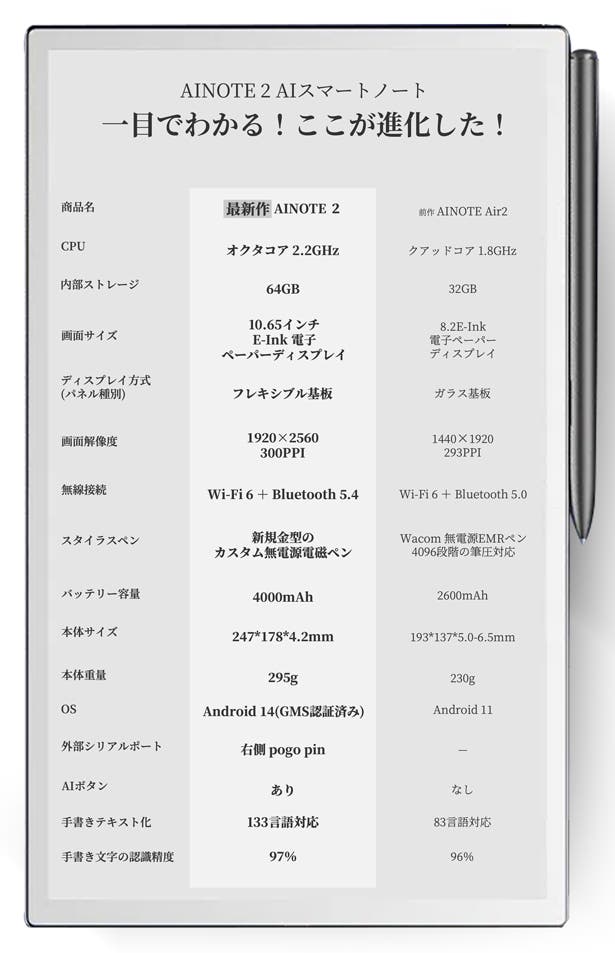 ※iFLYTEK前モデル「AINOTE Air2」との比較。