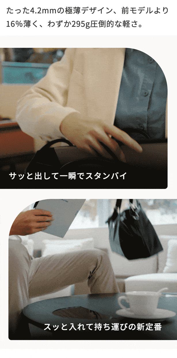 ビジネスパーソン必携!バッグにすっと収まるコンパクトさで、出張にも最適。場所を選ばずモバイルワークが可能。