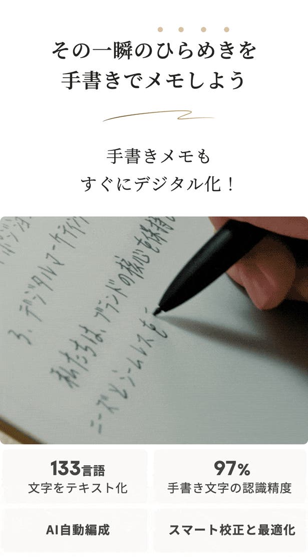 ※133対応言語の詳細については下記の「よくあるご質問」にてご確認ください。※97%:手書きメモの読み取り率の平均値。
