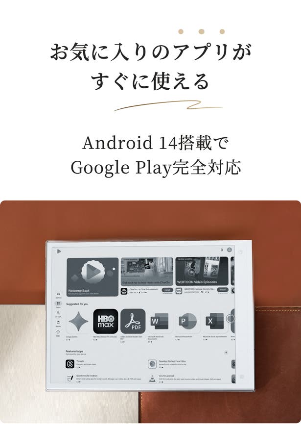 ※本製品はGoogle Playに対応しており、各種アプリをダウンロードしてご利用いただけます。ただし、すべてのアプリについて動作を保証するものではございませんので、あらかじめご了承ください。