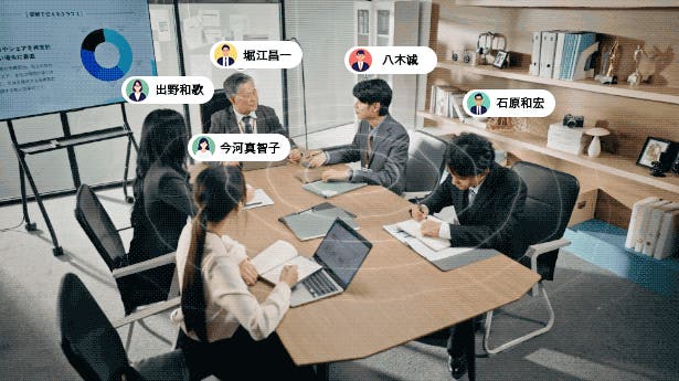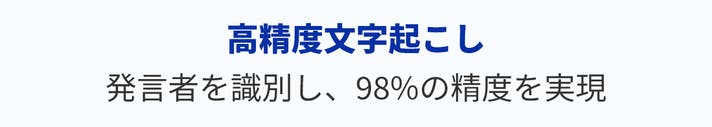 AIが各々の声を識別し、「誰が、何を話したか」を明確に区別!騒がしい環境でも98%の高精度を実現し、本来の議論に集中できます。さらに、112言語の音声文字起こしに対応!あらゆるシーンで活用できます。