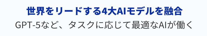 4大AI(ChatGPT・Gemini・DeepSeek・Claude ※1)連携!深い理解と高精度な応答で、煩雑な業務を効率化。