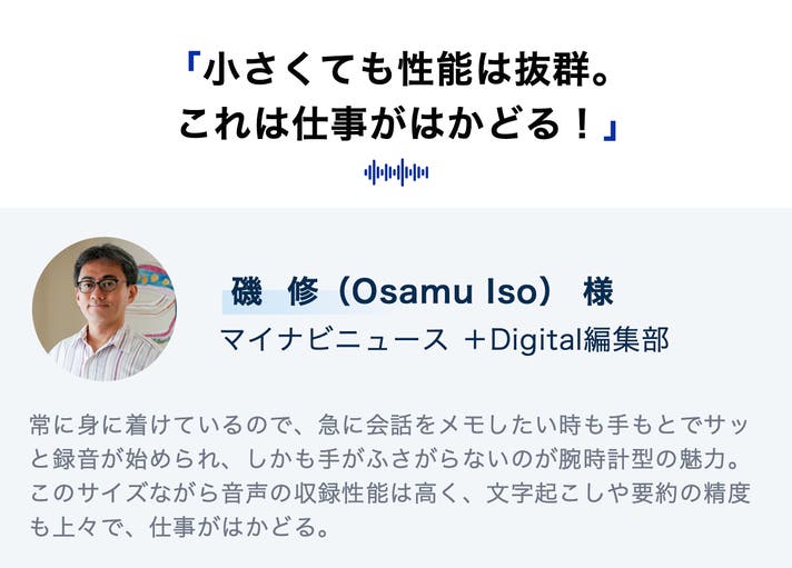 着信を手元で確認し、タップですぐに対応!外出先や騒がしい環境でも、クリアな音声を記録可能。