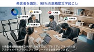 AIが各々の声を識別し、「誰が、何を話したか」を明確に区別!騒がしい環境でも98%の高精度を実現し、本来の議論に集中できます。さらに、112言語の音声文字起こしに対応!あらゆるシーンで活用できます。