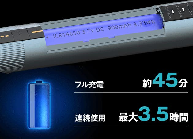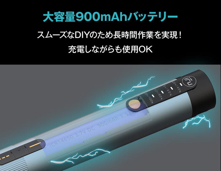 900mAhの高容量バッテリーと、充電しながら使える設計で、時間を気にせず作業に没頭できます。スマート充電保護機能でバッテリーの長寿命化も実現