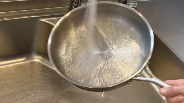 グラグラと水面が揺れて、フライパン全体に熱が行き渡っているのが分かります。