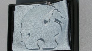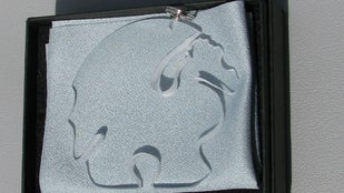 まっさらな丸いレンズもメガネの形だったら加工機にセットしてボタンを押せば自動で削ってくれるのですが、 ネコ とか りんご とか 竜 を彫りだすことは簡単なことではありませんでした。