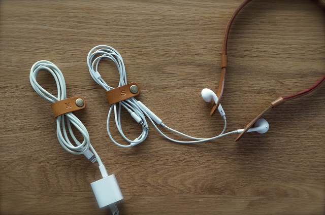 iHooc、1つにつきイニシャル刻印付きの革製のコードホルダーが付属します。