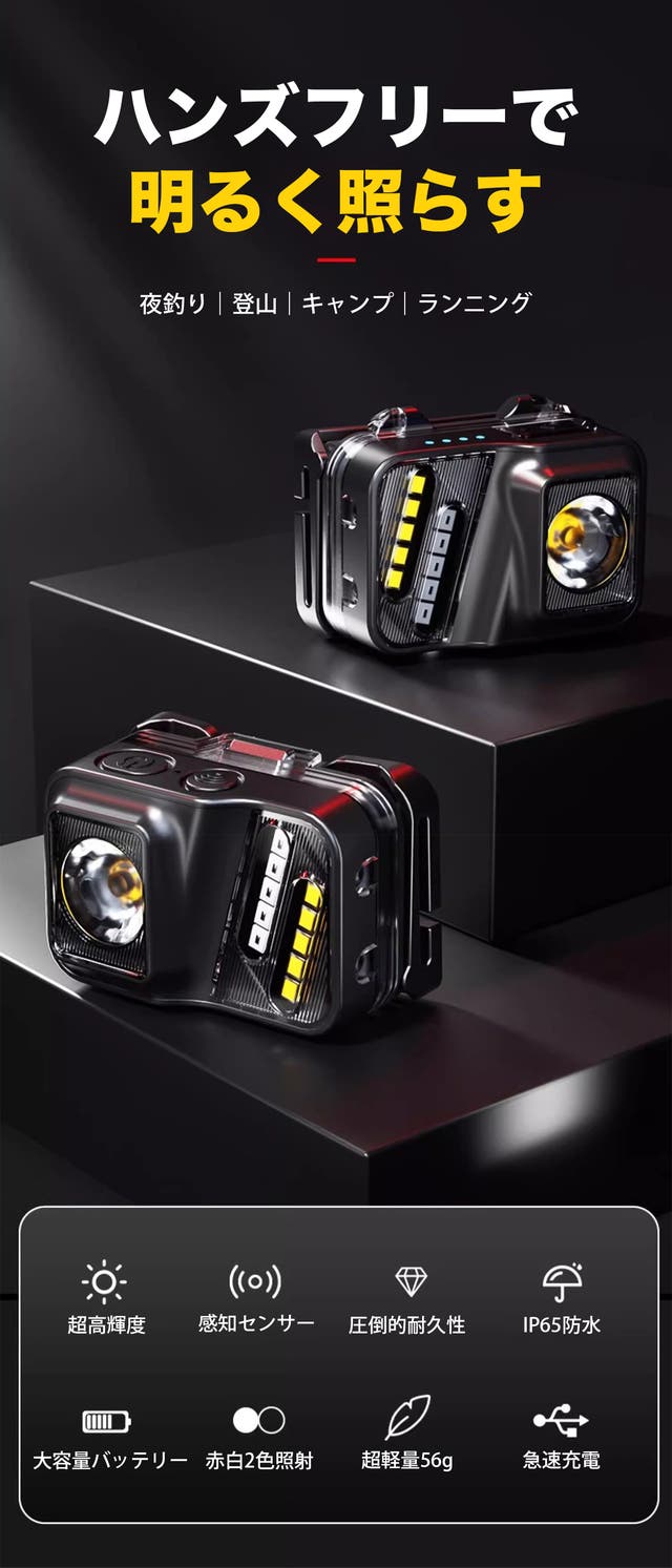 - 8つの照射モード搭載で様々なシーンで大活躍。Type-C急速充電&IP65の強力防水設計!