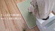 い草という素材を使用することで、い草と肌が触れ合う瞬間のさらさら感、思わず頬擦りしたくなるような心地良さが快適な時間を過ごす手助けになると考えています。ライフスタイルの変化と共に目にする機会がめっきり減ってしまった、日本の伝統床材の畳。畳の原材料であるい草は、なんと1,400年もの歴史があり、絶えることなく消えることなく、現役で使われ続けている奇跡的な自然素材です。薬品を使わず素材のままに、汚れにくさやアンモニアの消臭以外にも汗臭や加齢臭の原因となる酢酸やイソ吉草酸を減少させます。また、調湿効果など多くの機能が備わっています。