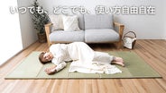 家事やテレワークなど合間に、サッと敷いてちょっと仮眠。厚み約15mmでクッション性もあるので、床付き感なく、快適にごろ寝。