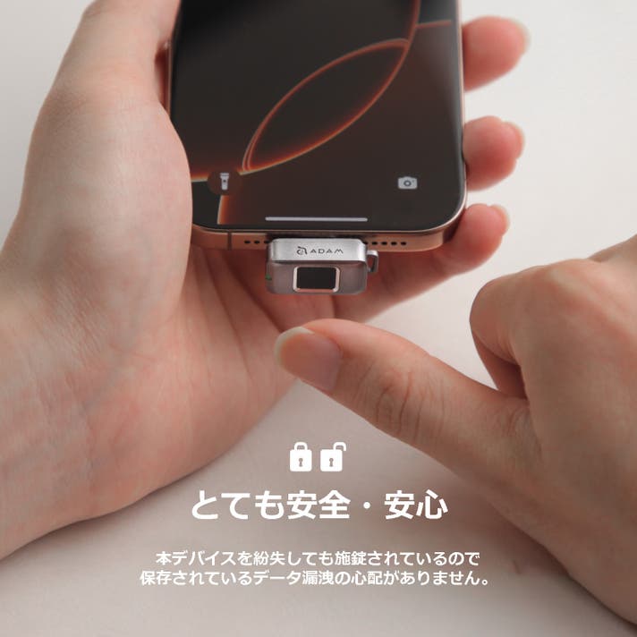 本デバイスを紛失しても施錠されている状態なので保存されているデータが漏洩する心配がありません。