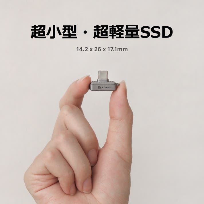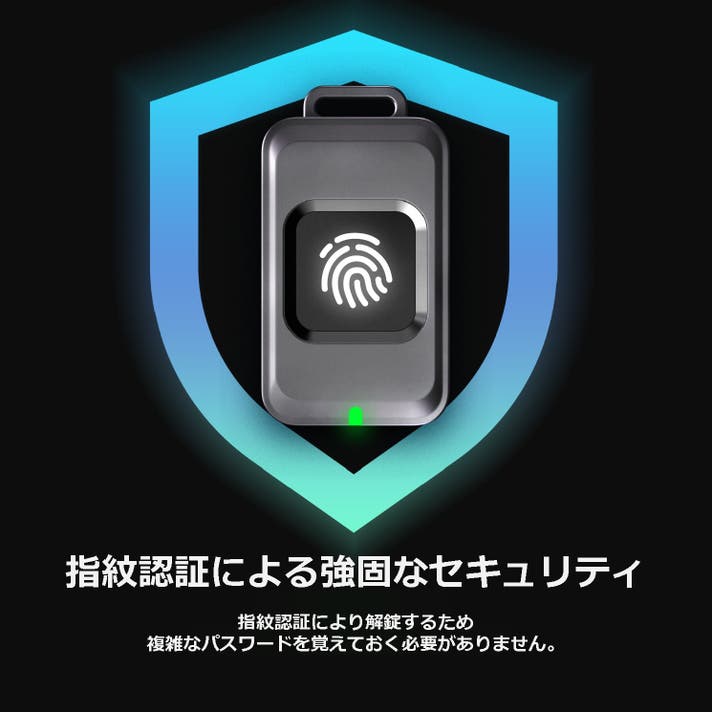 - わずか5.2gの超軽量・超小型ボディに、理論値450MB/秒の高速転送と指紋認証機能を搭載。