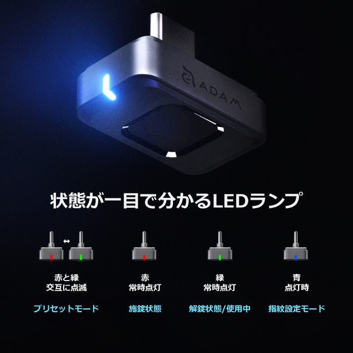 最大20個の指紋を登録可能。パスワードを記憶する必要がないので、セキュリティと利便性をバランスよく両立しています。