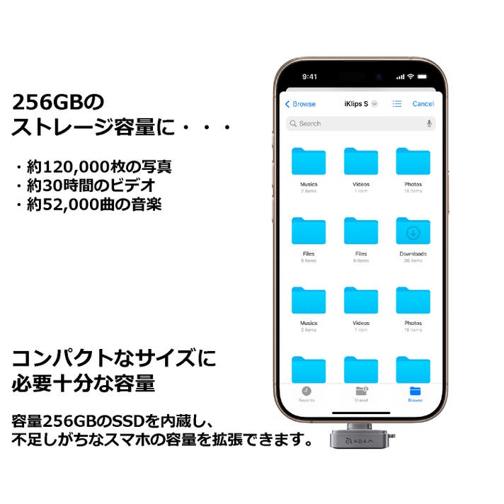 「iKlips S」を使えば、スマホの容量不足から解放され、写真も動画も気にせず撮影できます。