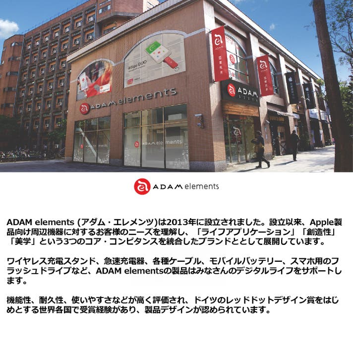 ADAM elementsは、2013年の創業以来、Apple製品向け周辺機器を中心に「創造性・美しさ・機能性」を追求している台湾のメーカーです。「iKlips S」は「モバイル時代のセキュアストレージの新常識」をコンセプトに、日常からビジネスまで幅広く活躍できる製品として開発されました。