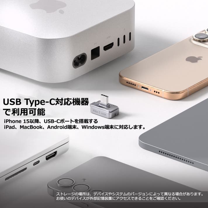 対応機種:USB Type-Cポートを採用する機器 iPhone 15以降, iPad. MacBook, AndroidimE, Windows端未