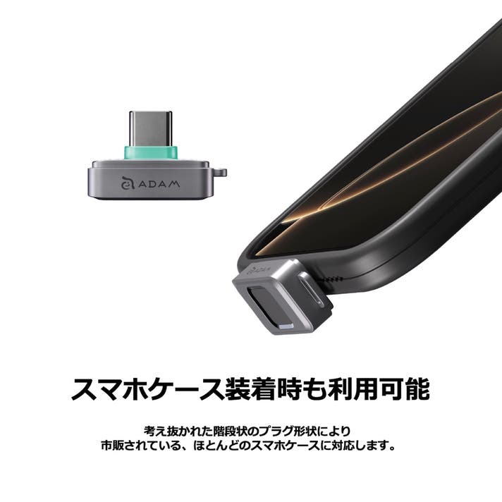 考え抜かれた階段状のプラグ形状により市販されているほとんどのスマホケースに対応します。