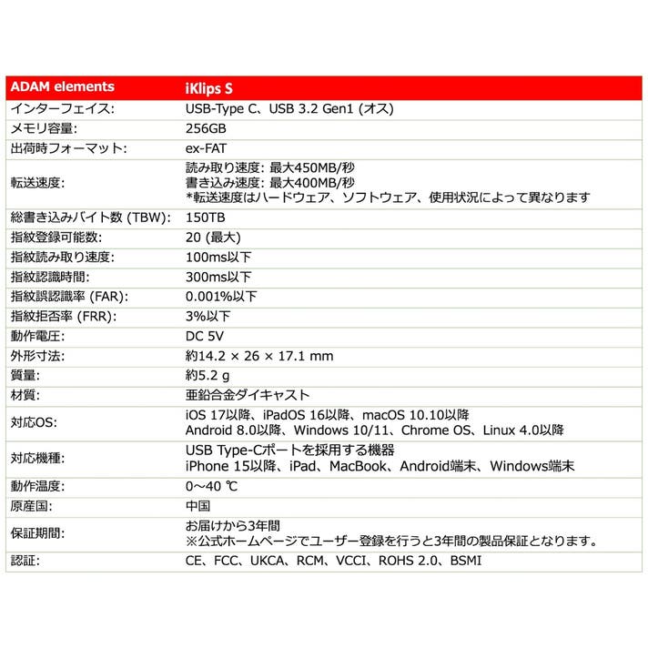ADAM elementsの「iKlips S」は超小型・超軽量 指紋認証機能付きのUSB-C SSD