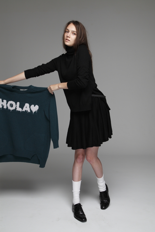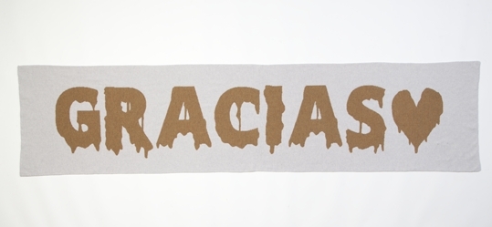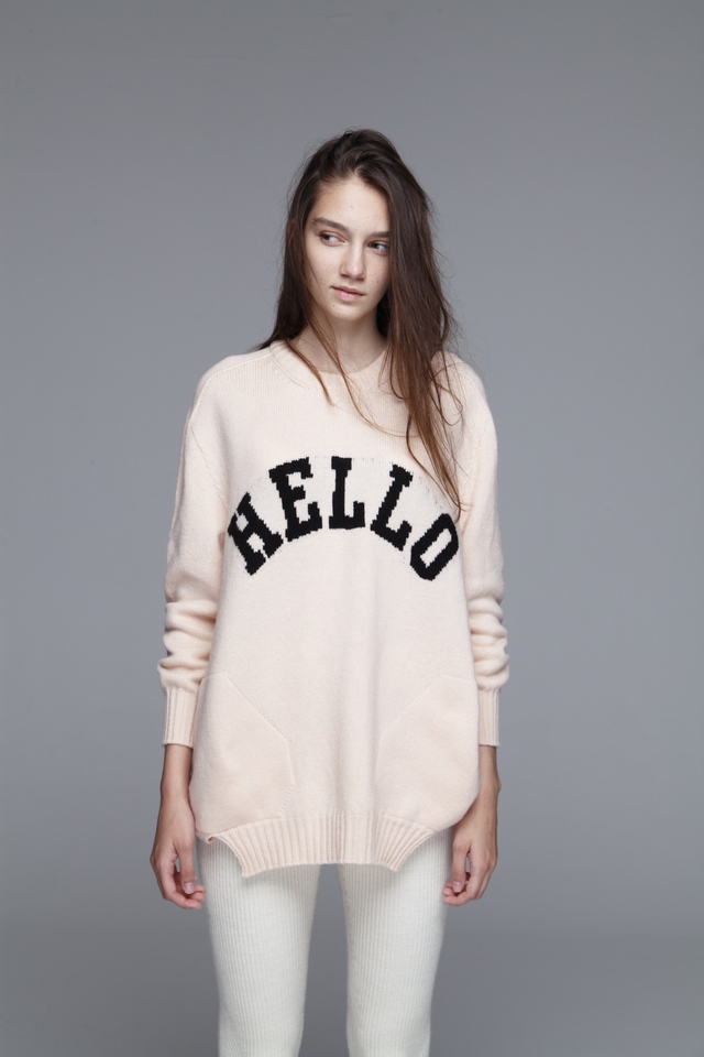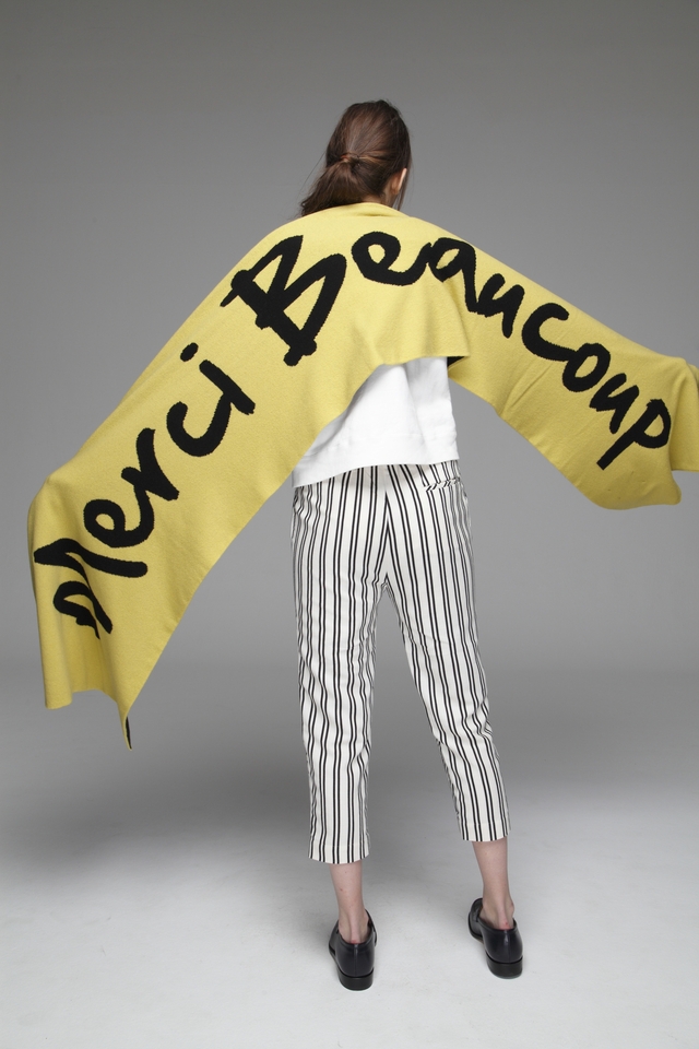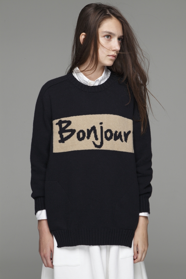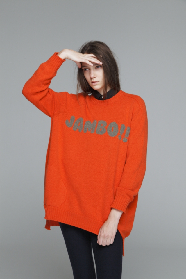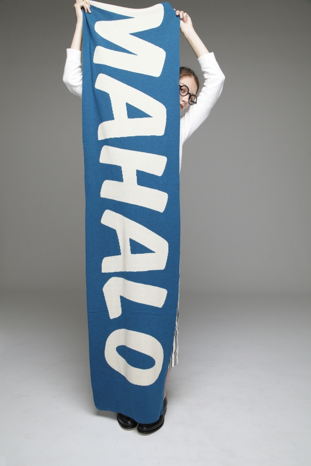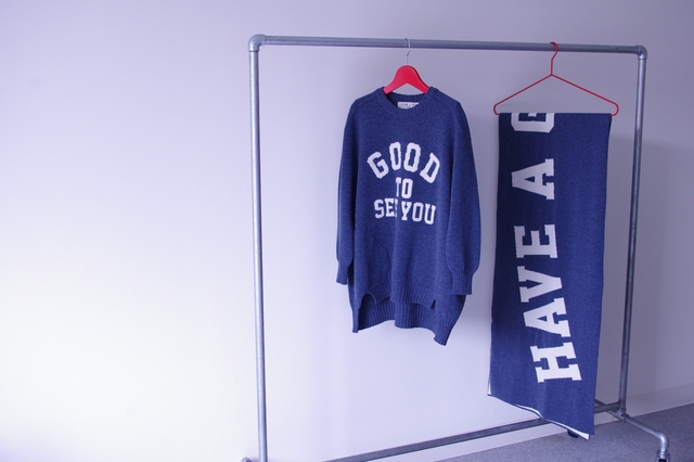 プルオーバーは世界の言葉で「こんにちは」、ストールは世界の言葉で「ありがとう」になっているんです。