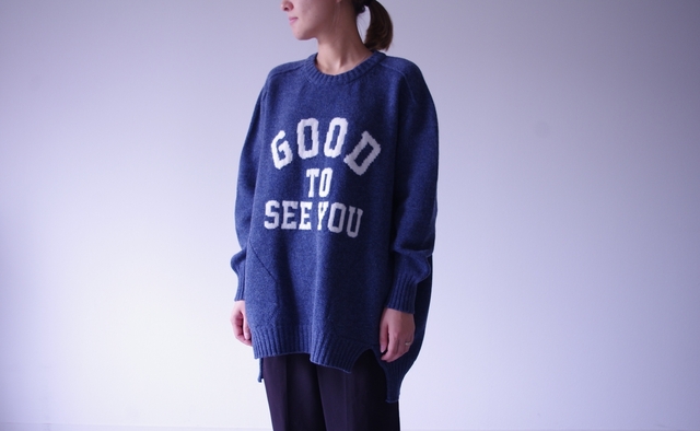 ・イリアンローヴカスタマイズニットのMakuake限定デザインのプルオーバーです。こちらのカラーは通常30色用意しているカラーでは展開していないインディゴカラーのベースに白のロゴが入ります。ロゴデザインもMakuake限定デザインとなっています。