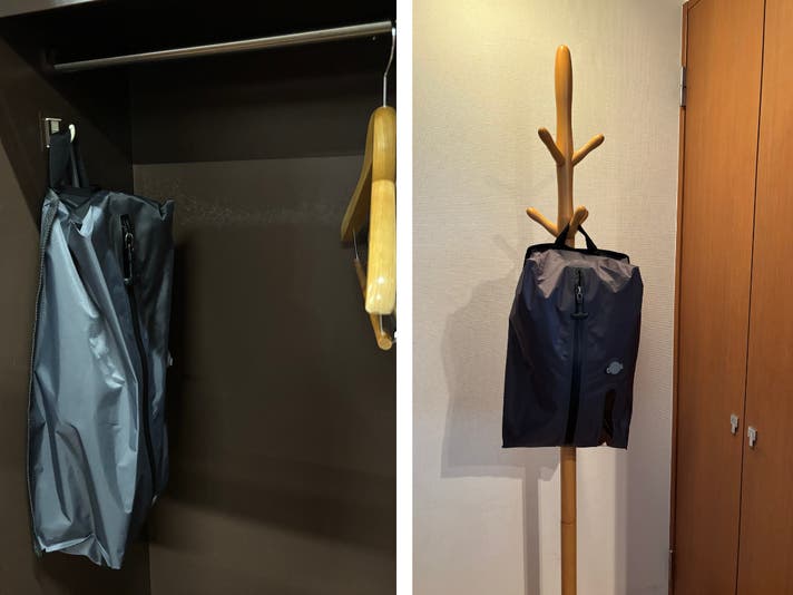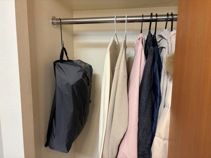 旅先ではそのまま吊るす収納に